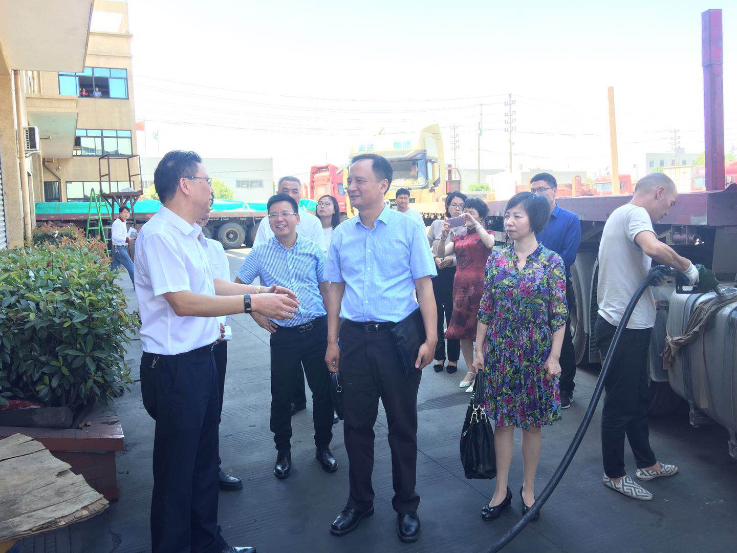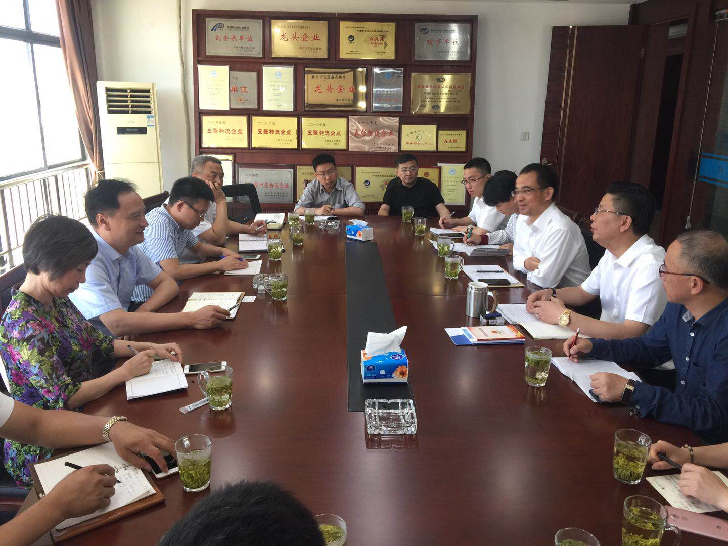 随后,戴铭主委一行来到平湖市安达汽车运输有限公司,深入生产作业现场、经营管理区域进行考察,详细了解企业的经营情况。在座谈会上,平湖市安达汽车运输有限公司总经理曹善荣结合企业二十多年来的创业经历、行业趋势、企业转型等作了详细的介绍。针对企业在新车上牌、办证等手续上存在繁琐情况,戴主委要求港区支部以社情民意方式报送市委会,加快与有关部门对接,促进“最多跑一次”工作深化。
