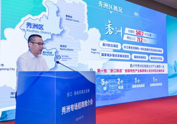 在秀洲招商推介会上,秀洲区政协党组书记、主席潘侃,中共秀洲区委常委、区委统战部部长任博,中共秀洲区委常委、区政府副区长张镁利,秀洲区政协副主席陆志芬,中共秀洲区委统战部常务副部长王春华,嘉兴国家高新区管委会常务副主任王磊,秀洲临空经济示范区建设指挥部招商运营组组长王曦东,嘉兴高新集团董事、副总经理包薇,以及秀洲民建企业家代表和有关人员参加活动。任博、陈越孟分别代表秀洲区、省民建企业家协会致辞。
