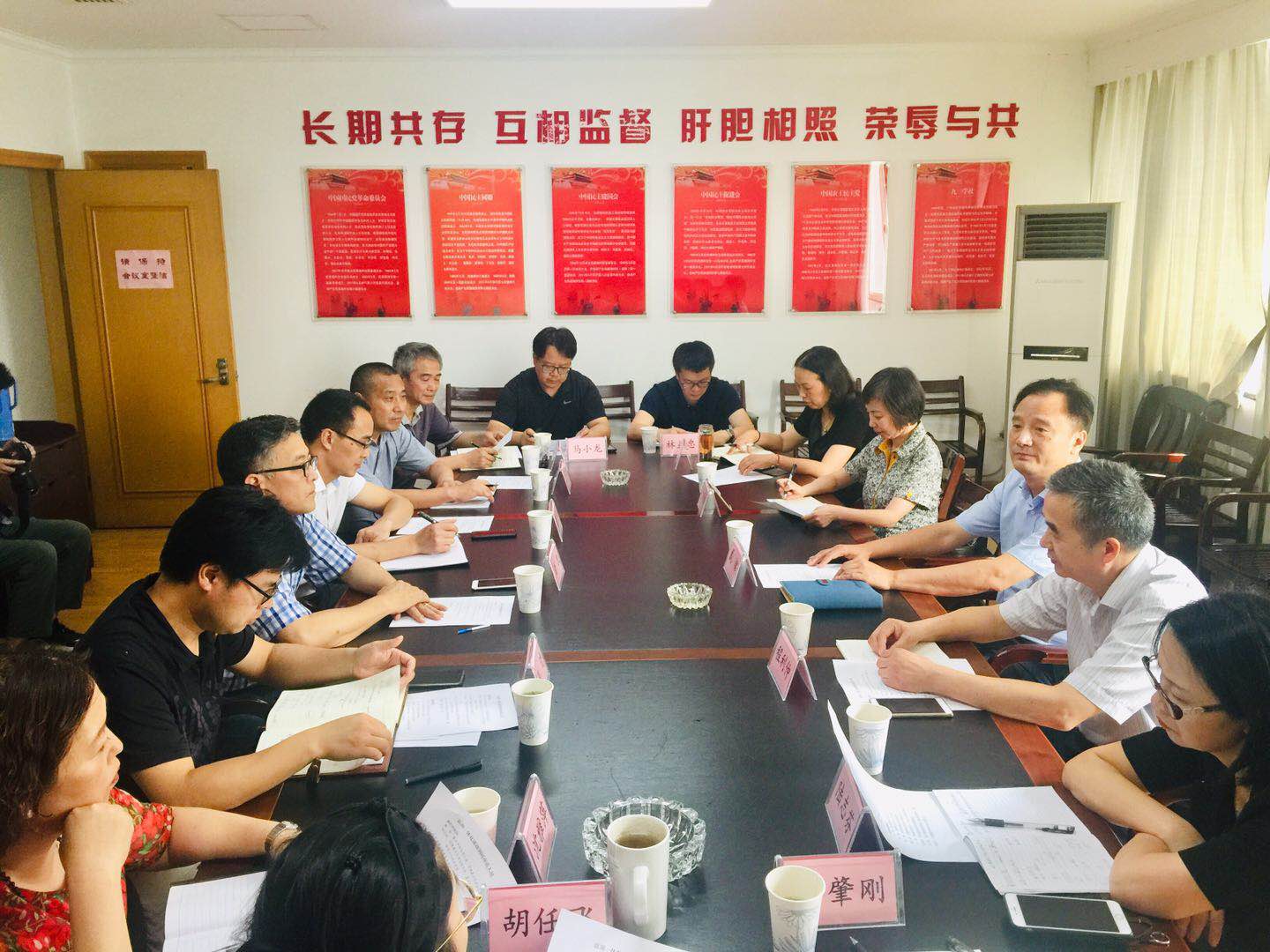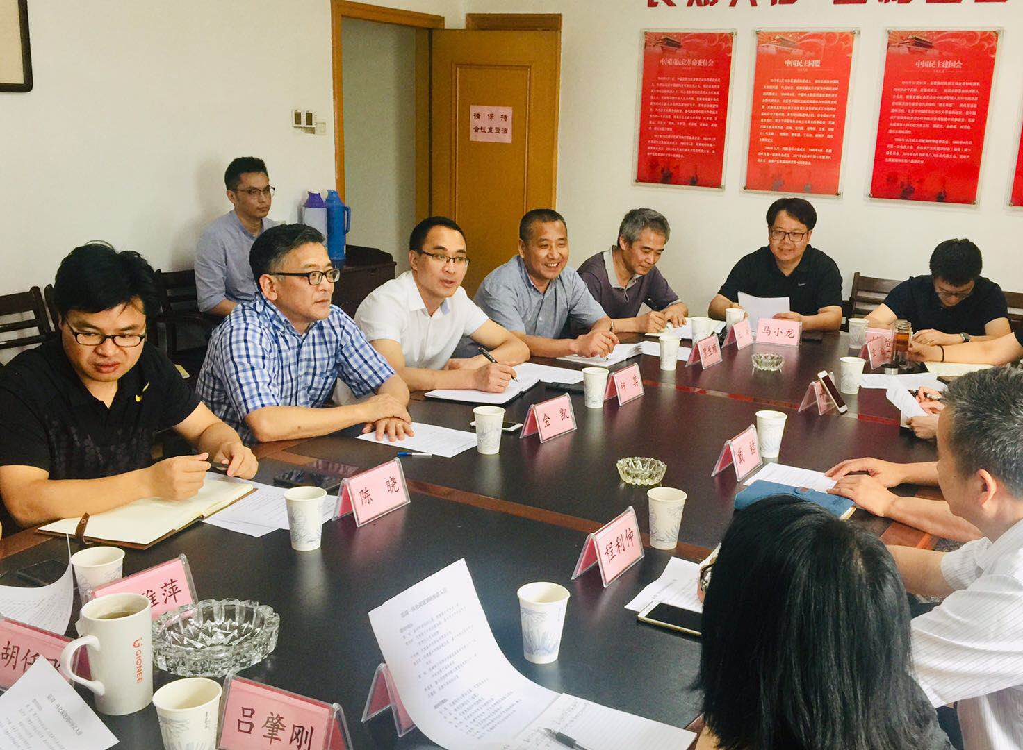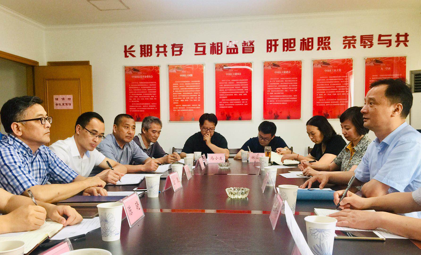 7月8日下午,民建嘉兴市委会主委戴铭、副主委程利仲、叶肖梅、陆志芬以及有关人员,专程前往民建湖州市委会,开展“嘉湖一体化建设”课题调研交流活动。民建湖州市委会主委金凯、副主委裴兰顺及有关人员参加会议。