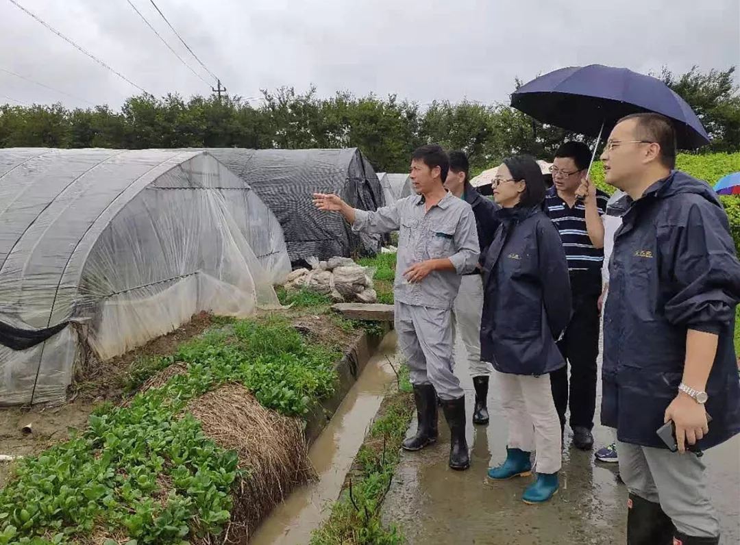 市农业农村局副局长、民建市委会副主委陆志芬,前往海宁周王庙云龙村、盐官镇实地查看了当地农民大棚加固情况以及海塘水位情况,指导当地农民抗灾。