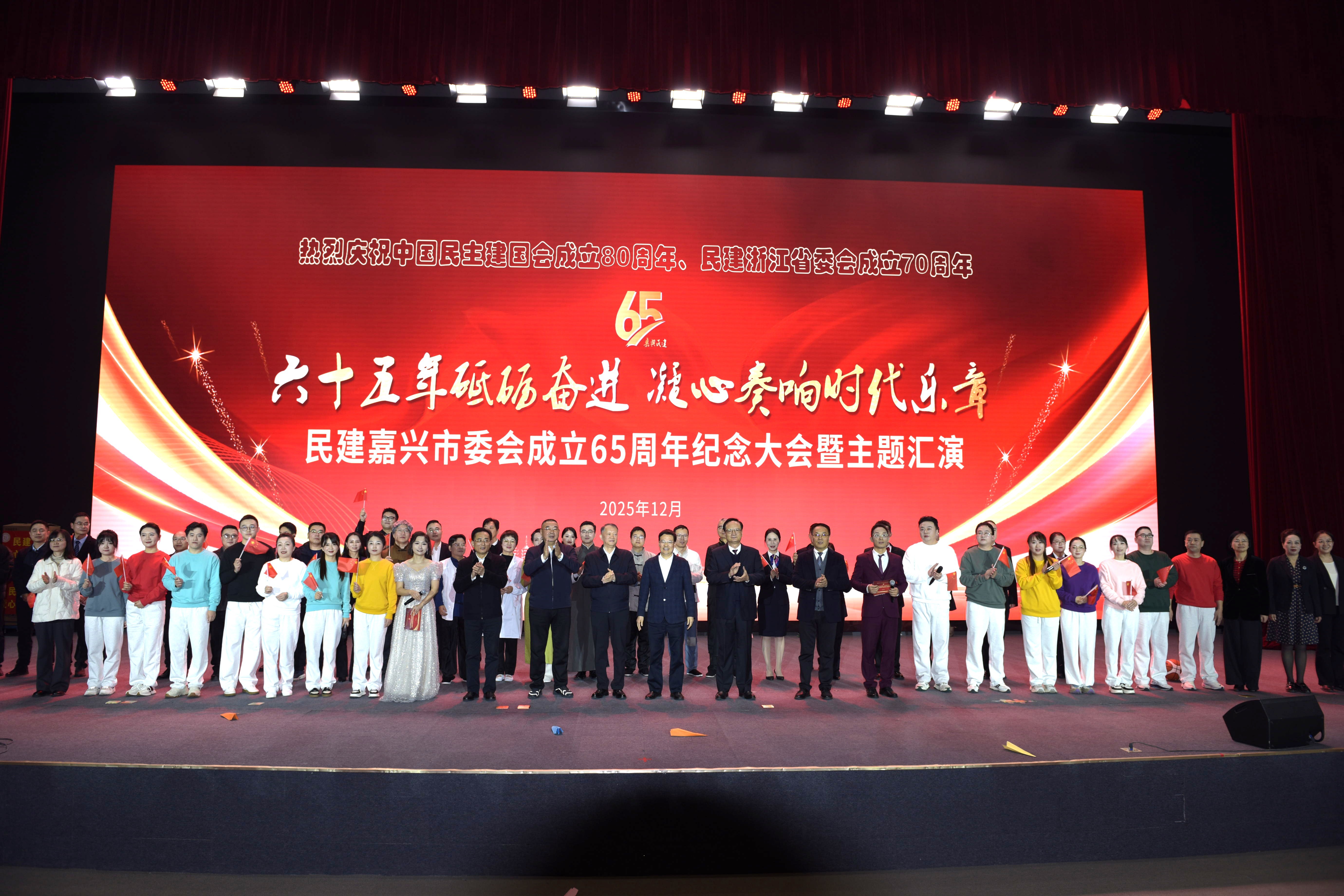 赓续优良传统,凝聚奋进力量。在民建嘉兴市委会成立65周年之际,编制《民建嘉兴简史》《嘉兴民建65年画册》,编写《我和我的民建-嘉兴民建人的故事》;举办了“六十五年砥砺奋进 凝心奏响时代乐章”纪念大会暨主题汇演,省市领导出席活动。表彰了光荣在会30年以上的老会员代表、优秀会员、会务工作者、会员之家及市先进集体,来自各基层组织的舞台剧、合唱等节目精彩纷呈。