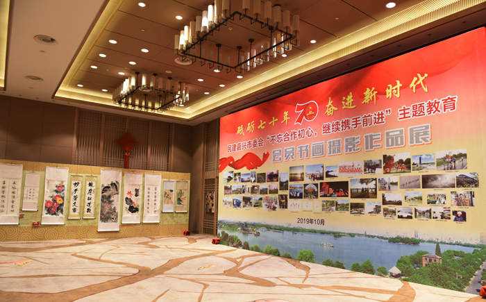 在活动现场,市委会精心布置了砥砺七十年,奋进新时代,民建嘉兴市委会“不忘合作初心,继续携手前进”主题教育暨会员书画摄影作品展。一幅幅精美书画,一张张摄影作品,展现了民建会员出众的才华和绚丽的风采。参加会议人员在参观同时,纷纷拍照留影,记录下愉快美好的一刻。