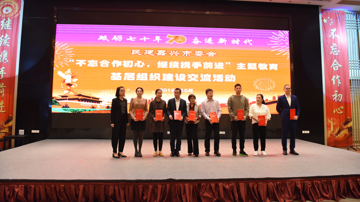 10月30日下午,砥砺七十年,奋进新时代,民建嘉兴市委会“不忘合作初心,继续携手前进”主题教育基层组织建设交流活动隆重举行。嘉兴市政协副主席、民建嘉兴市委会主委戴铭,民建嘉兴市委会副主委程利仲、叶肖梅、陆志芬,市委会委员、基层组织班子成员及会员代表、专委会负责人、省市人大代表和政协委员、会员骨干及机关干部共140多人参加活动。中共市委统战部部委会议成员、党派处处长印惠丽到会指导。