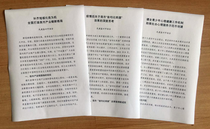 近日,民建嘉兴市委会参政议政、履行职能工作再创佳绩,在前不久举行的嘉兴“两会”上,市委会提交的4件集体提案中,有3件获得嘉兴市委书记张兵批示。