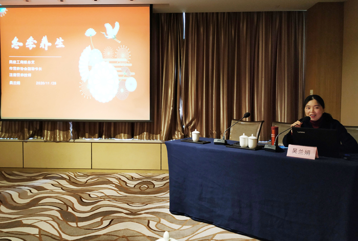 民建工商联总支委员、嘉兴妇幼保健院营养师吴兰娟为老会员讲解冬季如何进补养生知识。详细介绍了如何根据冬季气候的特点,围绕立冬、小雪、大雪、冬至、小寒、大寒6个节气注重养生的相关知识,着重提到了养生要注意节气,冬至是进补的好时节,冬季养生最宜养肾脏等方面内容。把十个小动作,从头到脚养生耐心细致地进行讲解和指导。老会员边听边做,乐此不疲。