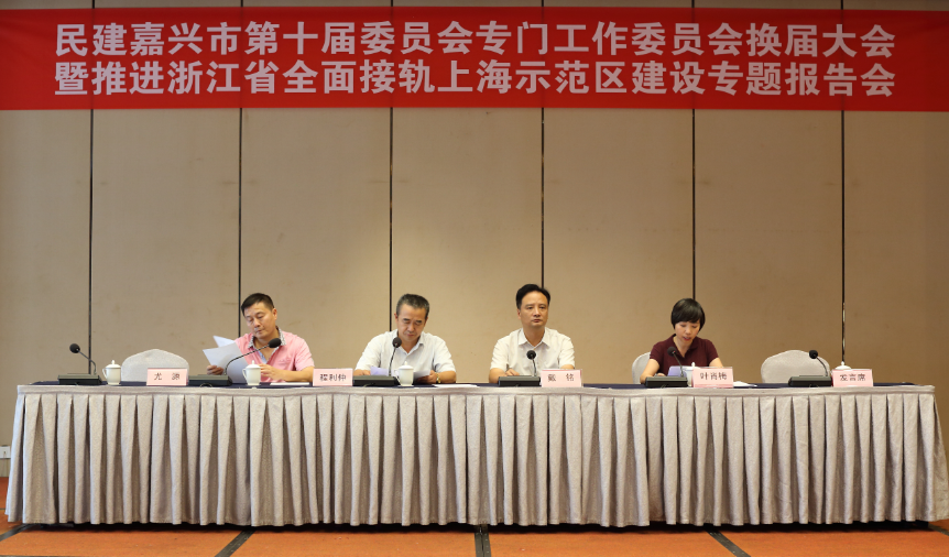 8月16日下午,民建嘉兴市第十届委员会专门工作委员会换届大会在沙龙宾馆举行。市政协副主席、民建嘉兴市委主委戴铭,中共嘉兴市委统战部常务副部长张颍杰,民建副主委程利仲、叶肖梅、尤源,以及各专门委员会的主任、副主任、委员共计110余人参加会议。