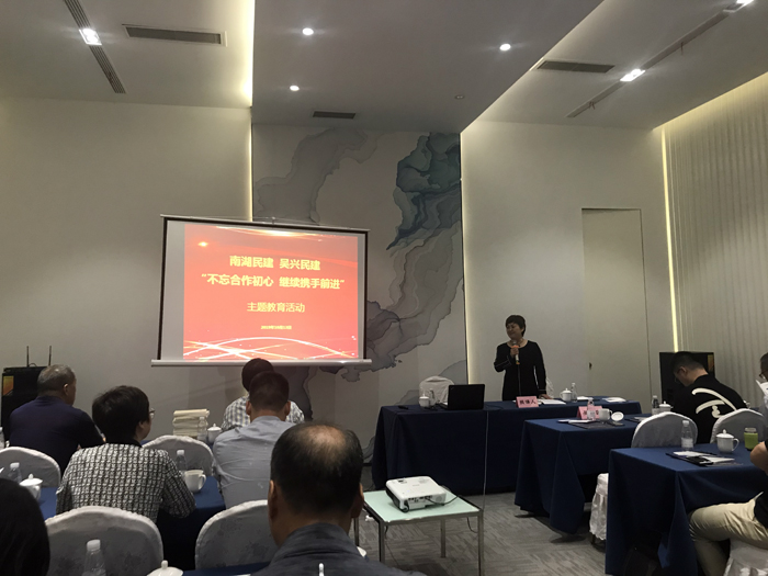 10月13日下午,嘉兴市南湖区、湖州市吴兴区两地民建组织联合在CEC杭州湾制造新城,开展“不忘合作初心,继续携手前进”主题教育活动,两地民建班子成员、相关骨干会员参加此次活动。会议由民建吴兴区基层委主委张丽英主持。