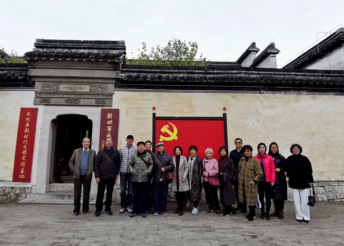 活动中会员们还参观了长兴新四军苏浙军区纪念馆,纪念馆整个展览围绕新四军在浙西这一主题,包括新四军十六旅开辟抗日根据地、新四军苏浙军区成立肩负战略反攻重任、抗日民主根据地建设、抗战胜利新四军奉命北辙、缅怀革命先烈继承革命遗志、长兴抗日烽火、老战士诗书画、革命文物等八个方面系统地记录了一九四三年秋至一九四五年十月新四军苏浙军区整个战斗历程。通过馆藏的珍贵革命文物、历史照片、新四军战士的诗书画作品等学习,会员们感受到当年新四军苏浙军区广大军民可歌可泣的光辉业绩和粟裕、叶飞、刘先胜等将军的卓著功勋。